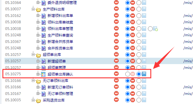并且在权限设置页面,给需要审核确认超领单的人员赋予“05.102752:超领单出库确认”权限: