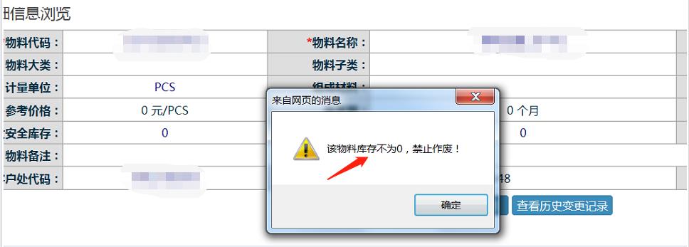 遇到该提示,则需要将所有库存做其他出库操作,再操作物料作废