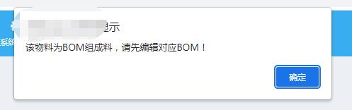 4、提示3、提示该物料为BOM组成料,先编辑对应BOM,如下图: