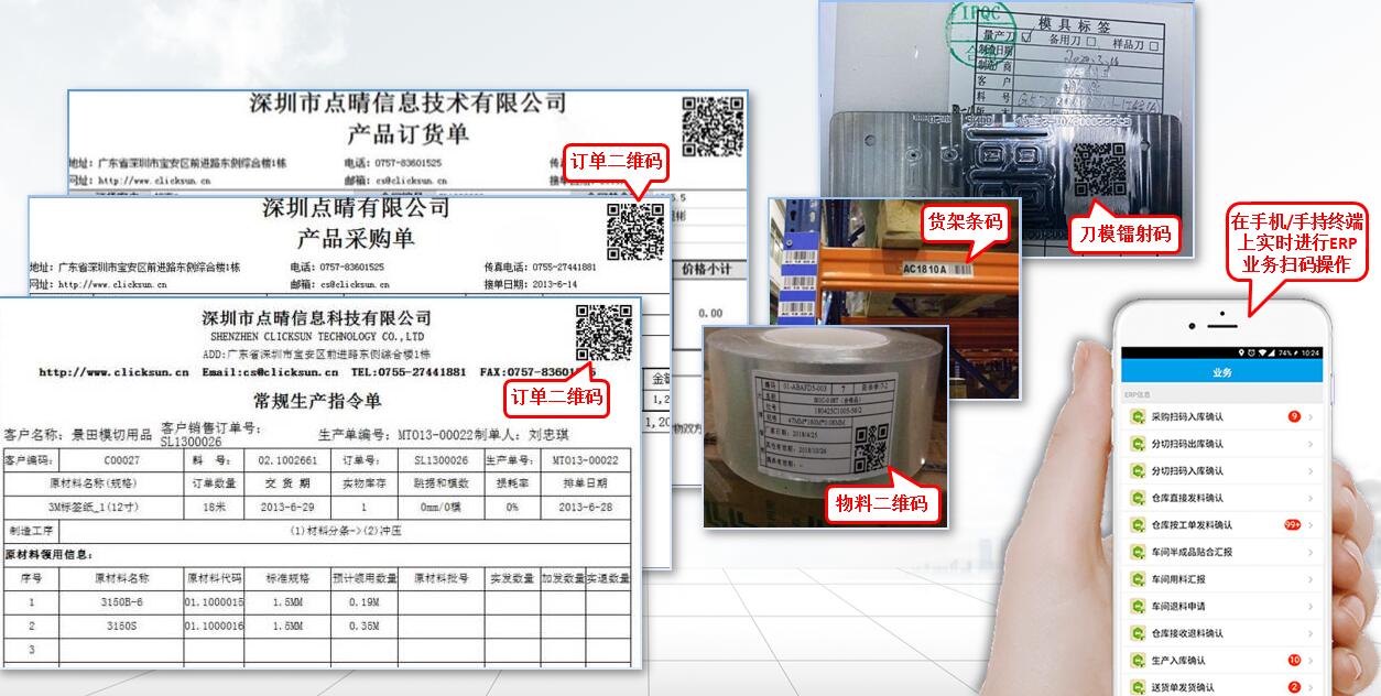 点晴模切ERP通过引入移动互联网、智能手机、二维码,通过手持终端识别二维码实现了ERP流程智能跳转指引。与传统ERP相比,操作人员无需ERP流程培训,即可顺畅操作系统,从而降低了ERP系统对操作人员的技能依赖,有效提高操作效率及准确率。结合点晴OA移动办公,实现全面信息化管理。