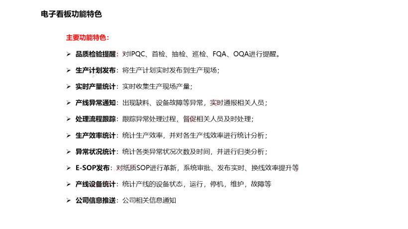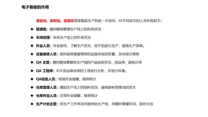 电子看板系统广泛应用于各种行业的生产制造企业,可以自动将生产数据、质量数据、异常信息等车间生产信息自动实时显示在车间的LED显示屏、液晶显示器或相关人员的电脑上,实现车间生产管理数字化、透明化和可视化。 由此推出了专门针对制造行业的一整套可视化电子看板系统,利用电子看板系统可对生产车间的信息进行目视管理,方便相关人员能及时了解整个生产进度、问题出现的情况等等与生产相关的信息,从而提高整个生产效率。 相关教程: 点晴模切ERP更多信息:http://moqie.clicksun.cn,联系电话:4001861886 该文章在 2024/7/17 10:23:16 编辑过 |