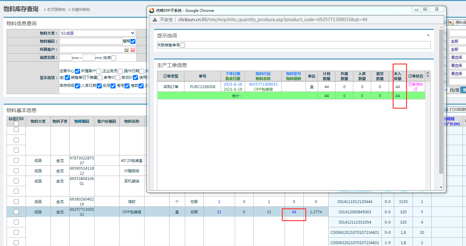 入库在途是跟单据计算的,找到对应生产单或者采购单。 点晴模切ERP更多信息:http://moqie.clicksun.cn,联系电话:4001861886 该文章在 2024/12/11 10:07:24 编辑过 |