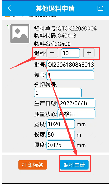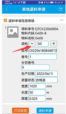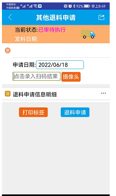 点晴模切ERP仓库其他出库退料扫码申请操作