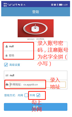 点晴模切ERP扫码APP安装后登陆设置