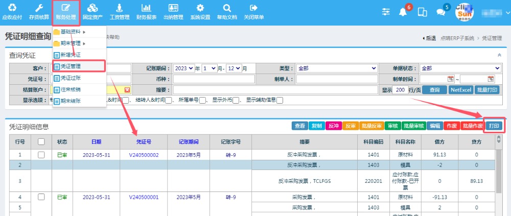 【点晴模切ERP】请问财务管理模块中可以打印记账凭证吗?