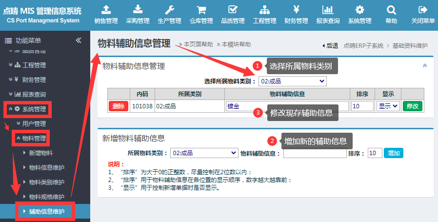 ![]() ![]() 进入:系统管理-》物料管理-》物料类别维护: