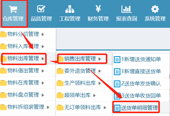 点晴模切ERP-送货单明细导出excel表