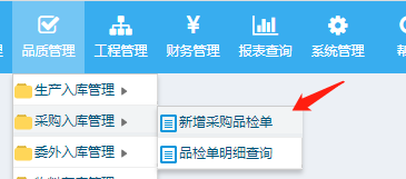 进入界面后,选择对应的采购入库单,点击“增加品检单”按钮