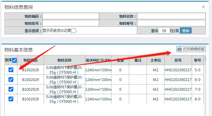 ![]() 勾选明细,点击打印明细标签完成