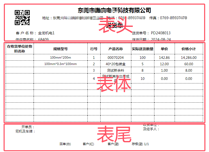 以下是点晴MIS系统提供的标准单据模板设计器使用教程。需要特别说明,以下模板只能实现传统的三段式标准结构的单据页面模板设计,三段式标准结构如下:主表表头、表体明细信息、表尾备注和其他说明信息。 如果是其他结构的单据,则无法用本单据模板设计器实现,需要另外单独定制开发。 ![]()