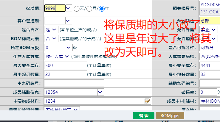 进入库存查询时弹出提示:保质期严禁超出99999天或者360个月或者30年!请去物料基础信息处修改该产品保质期?