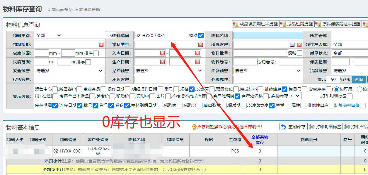 这是因为要初始化后才会显示有0库存的信息,否则查询为空。要在电脑上以其他入库方式下新增一笔这物料的库存后才能有0库存也显示的效果。
