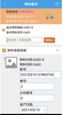 点晴模切ERP业务通APP盘点操作-按物料盘点