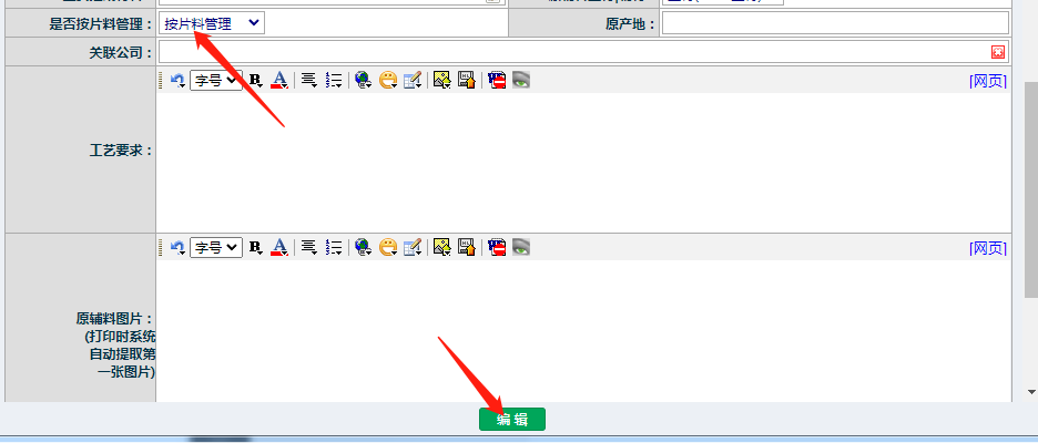 ![]() 首先资料需创建(修改)成卷料属性,按片料管理 进入界面后,选择对应的资料,点击编辑按钮 确保资料设置为卷料属性,按片料管理后点击提交