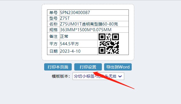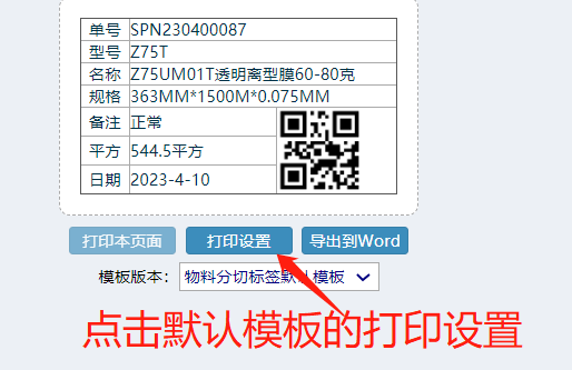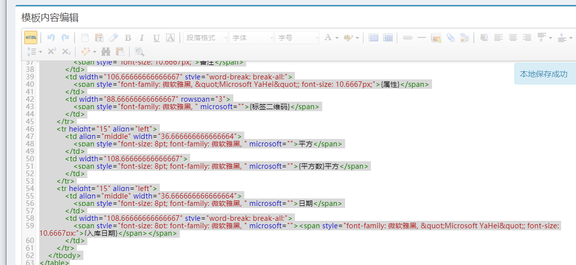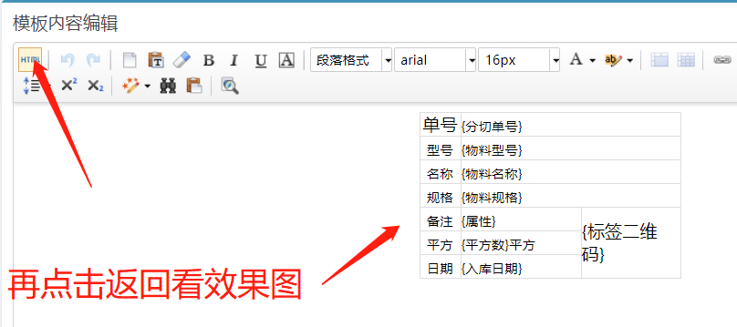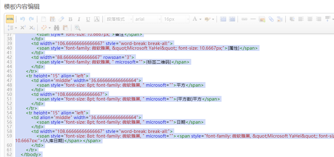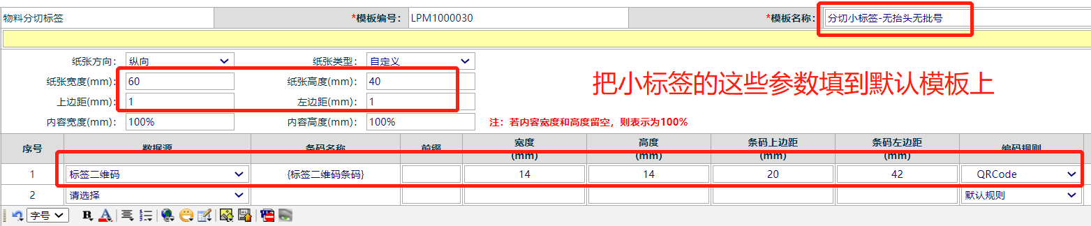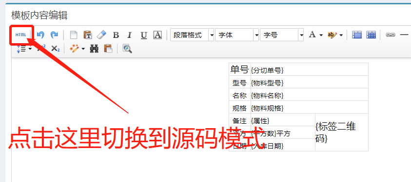 全选后复制。 接着进入默认模板的打印设置 同样切换到源码模式,全选后把刚刚复制的代码复制到这里,替换即可 然后返回图形模式,看效果图: 把小标签的这些参数填到默认模板上。 如下图: 最后把这次默认模板的编辑的内容保存,点击编辑保存即可。 点晴模切ERP更多信息:http://moqie.clicksun.cn,联系电话:4001861886 该文章在 2023/4/10 10:25:02 编辑过 |