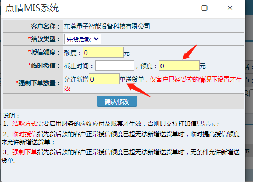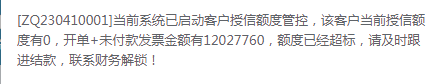 [点晴模切ERP][ZQ230410001]当前系统已启动客户授信额度管控,当前系统已启动发票账期管控无法新增送货单