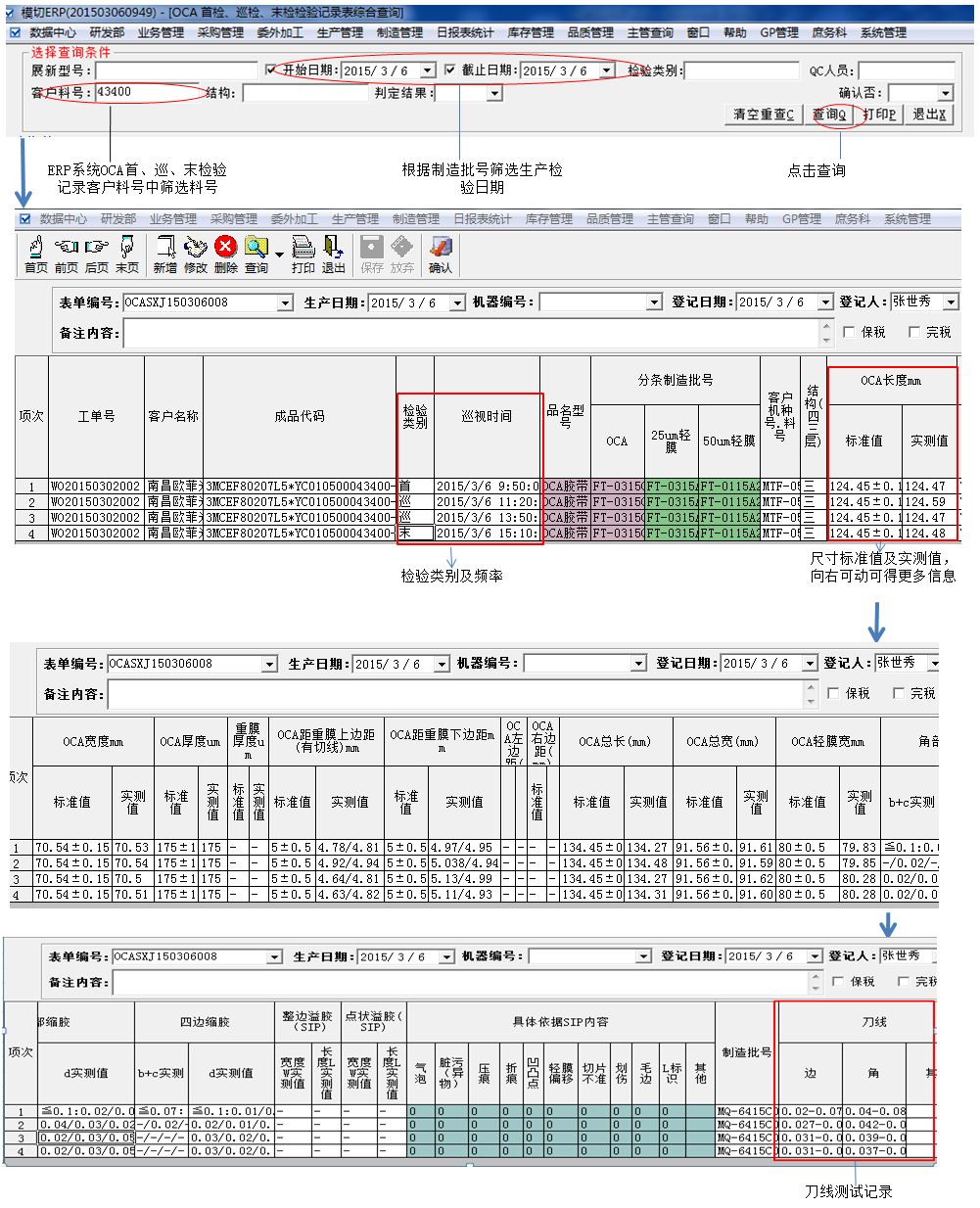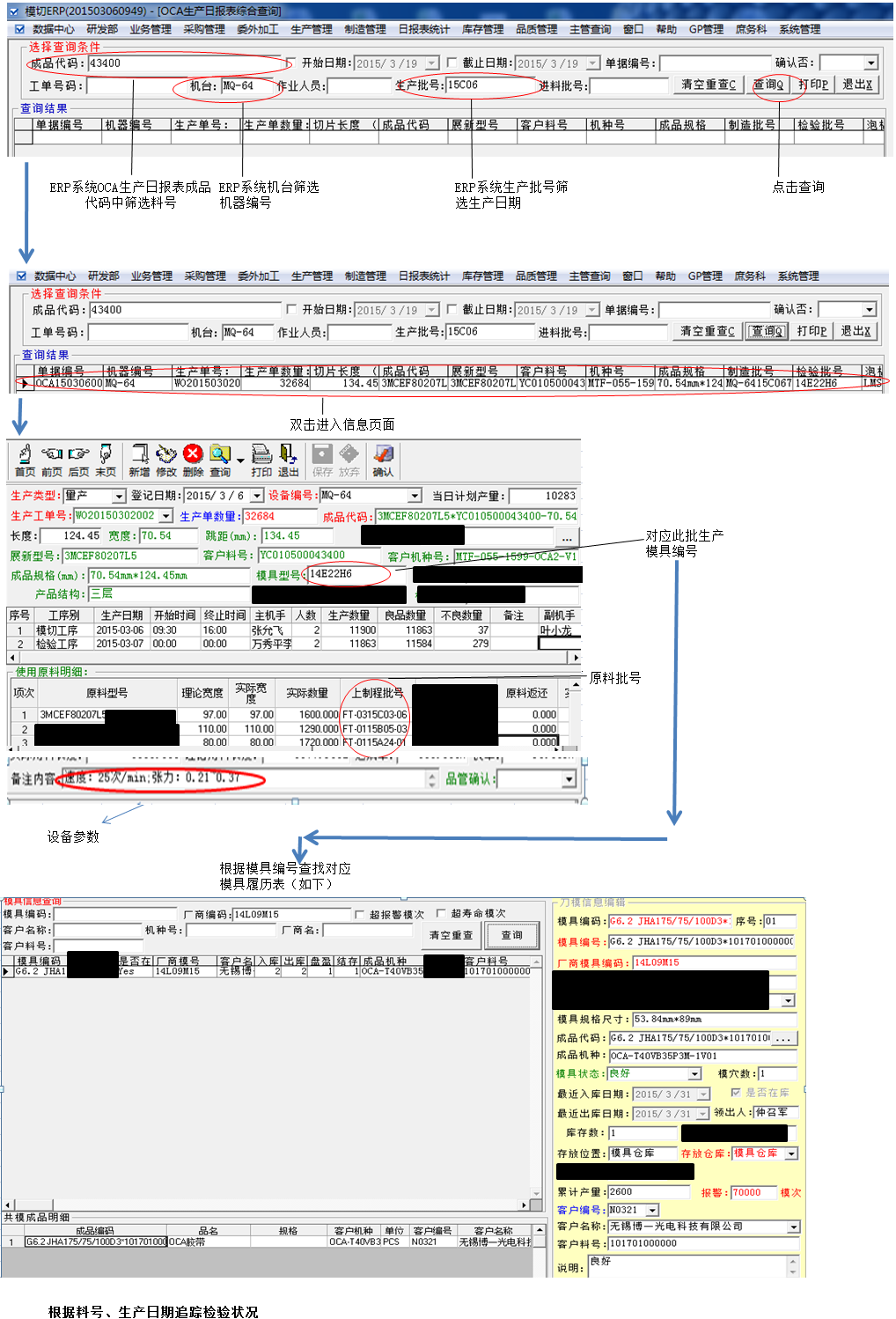 来料编码规则-OCA 根据料号、生产机台编号、生产日期追踪生产状况举例如下: 根据料号、生产日期追踪检验状况: 点晴模切ERP更多信息:http://moqie.clicksun.cn,联系电话:4001861886 该文章在 2023/5/6 10:07:30 编辑过 |