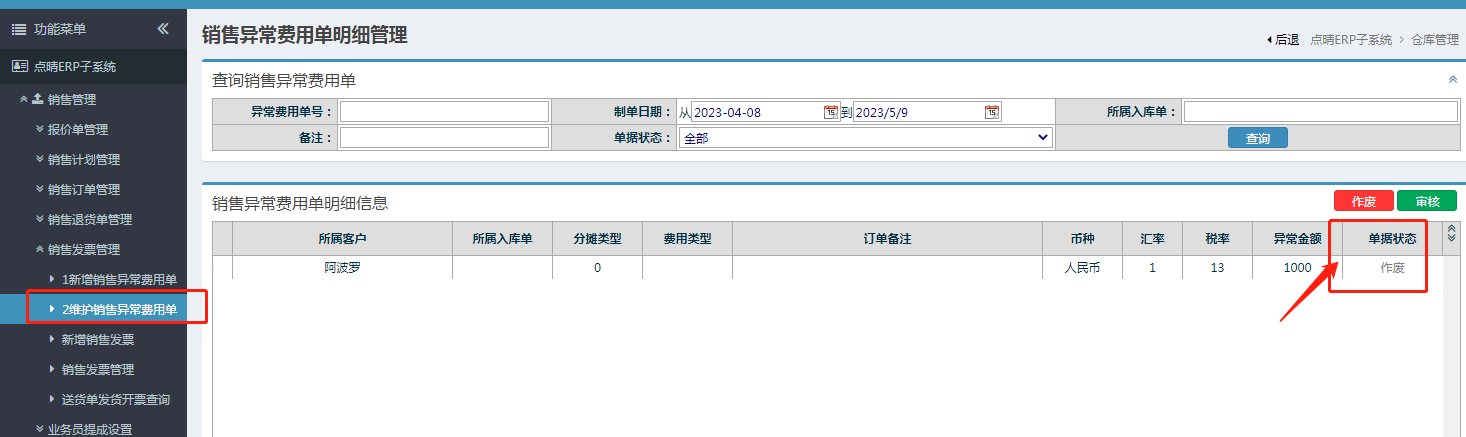 查询对应的异常费用单的状态,是否作废。 只有“已审核”状态的异常费用单才会在送货单发票和新增发票中查询到。