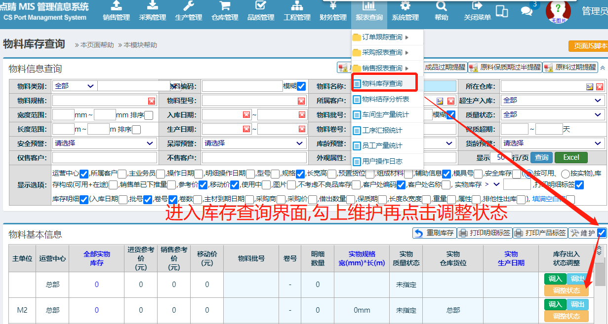 ![]() ![]() 情况描述:录入库存信息后,发现手持终端扫码发料扫不出去 提示:库存物料可允许出库的库存数量不足,禁止出库,一般情况由于其他人进行出库造成本次出库库存不足! 如下图: 检查库存信息后,发该批号的物料的仓位均在总部,没有在准确的仓位上。库存必须在准确的仓位上,否则是找不到的,所以提示物料库存不足。 所以要该库存仓位信息调整。 操作步骤: 1. 进入库存查询界面,勾上维护再点击调整状态。 如下图: 2. 在弹出的界面选上具体仓位,然后提交即可。 如下图: 补充说明:若有大量库存信息的仓位不是正确可进行批量操作 相关教程链接: ERP批量调整货位