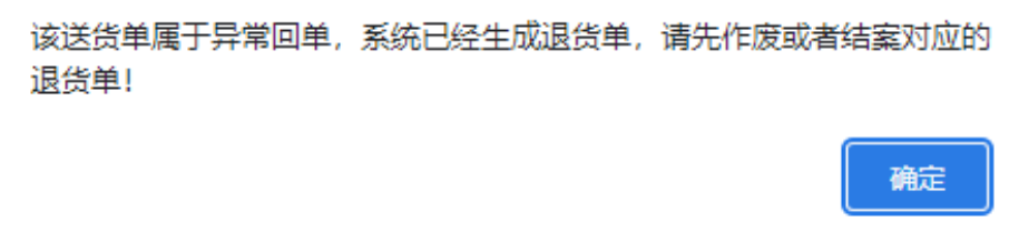 点晴模切ERP-送货单驳回时提示:该送货单属于异常回单,系统已经生成退货单,请先作废或者结案对应的退货单!如何解决