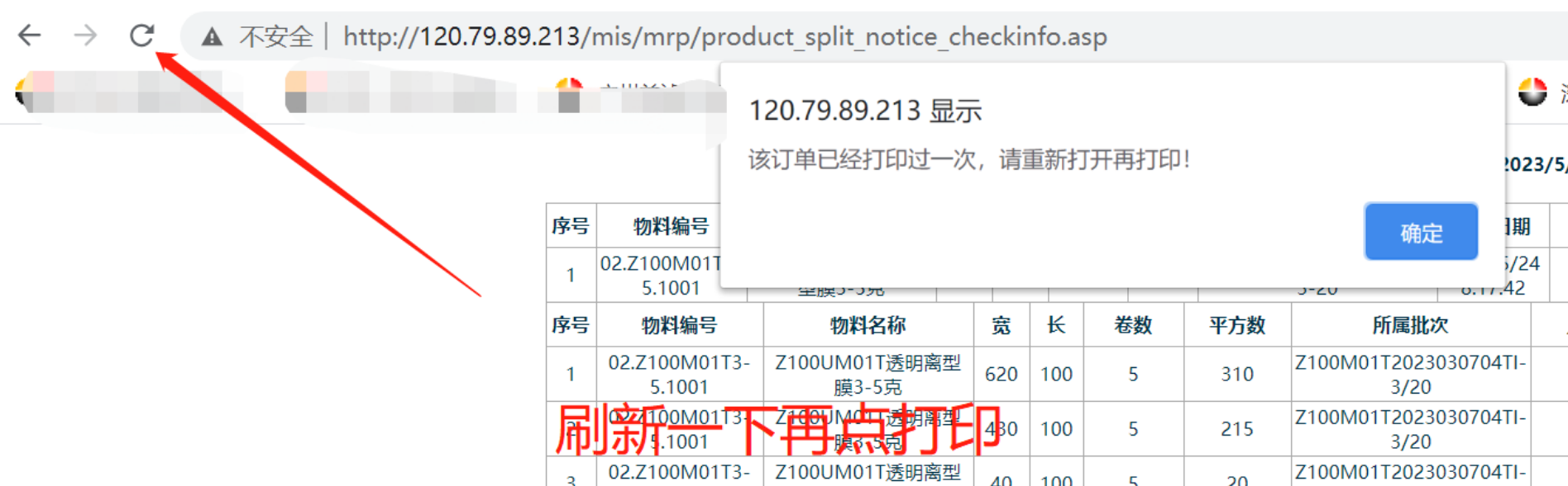 点晴模切ERP-提示:该订单已经打印过一次,请重新打开再打印!