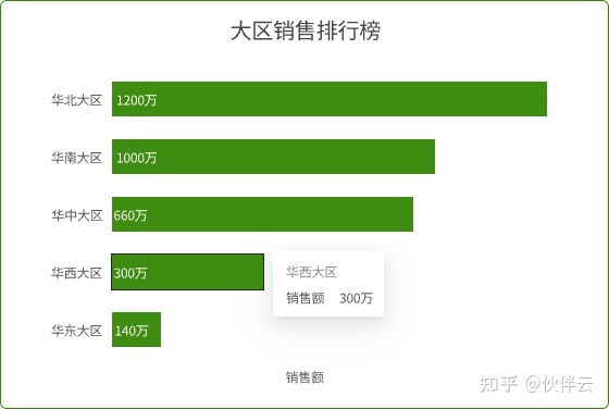 看销售业绩好的大区、业绩欠佳的大区,比较彼此的差距: