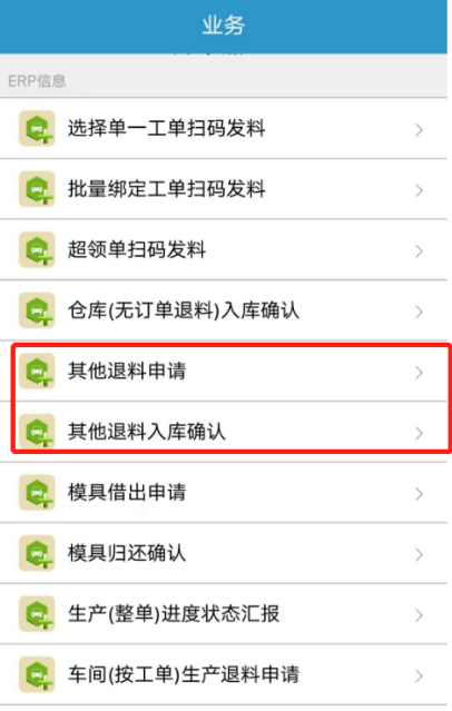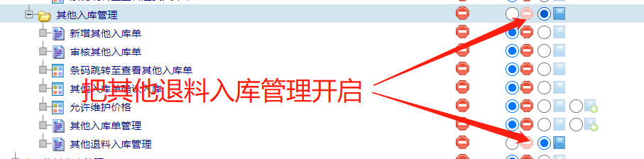 ![]() 把无订单退料入库确认权限开启 如下图: 把其他退料入库管理开启 如下图: 然后登录APP后,就能看到 如下图: