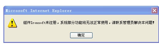 出现该提示的原因是组件Ironsoft未注册成功或者权限不够。