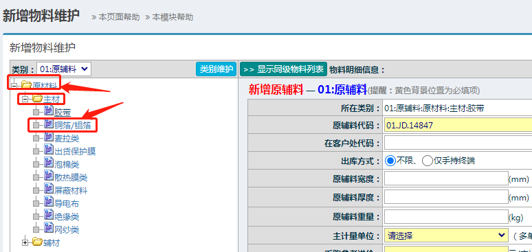 ![]() 新增物料时提醒: ![]() 答:遇到此现象新增时,需要选择最子级类型,如下图所示: 注意:点击加号位置展开 物料编辑时,提醒: 答:此时编辑需要将类别选择到最子级再进行编辑,如下图: ![]() 点晴模切ERP更多信息:http://moqie.clicksun.cn,联系电话:4001861886 该文章在 2023/6/20 11:45:09 编辑过 |