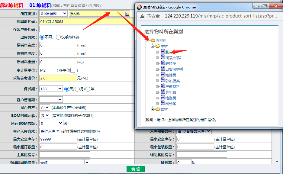 点晴模切ERP新增、编辑物料提示本级类别下任有下级类别,在本级下不允许新增类别,请选择下一级类别,什么原因,如何处理?