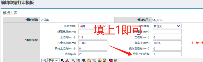 ![]() ![]() 情况描述:如何给单据模板添加空白行。 效果如下图: ![]() 1. 点击打印设置 如下图: