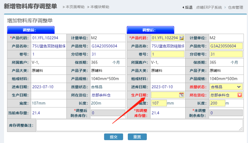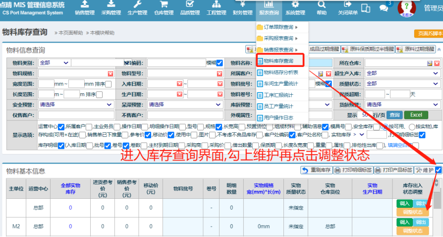 ![]() ![]() 情况描述:打印库存标签时,报错500或提示字段为空。 如下图: ![]() ![]() 原因:生产日期为空,需要补上生产日期 操作步骤: 1. 进入库存查询界面,勾上维护再点击调整状态。 如下图: ![]() 2.选上生产日期,然后提交即可 ![]()