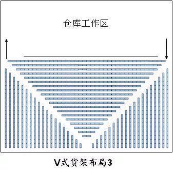 :仓库货架如何布局?布局的方式有哪些?仓库货架布局,百科给出的定义是:指在一定区域或库区内,对仓库的数量、规模、地理位置和仓库设施道路等各要素进行科学规划和整体设计。那么,仓库货架布局及仓库布局方式有哪些呢?在我们生活中谈起仓库货架布局,常见的无非就是两种:横式和竖式。横式竖式主要针对仓库工作面和进入方向而言,如下图所示: 从上图可以看出,无论横式还是竖式货架布局,货架长度方向均是垂直于主干道方向的。我们所常见的仓库布局大致都是这样,为什么会有这样的千遍一律? 首先,我们来分析电商仓库的设计,它的思路来源于传统仓库的设计。对于传统仓库来说,只要你仓库不是圆的,那么货架或垛位垂直或平行于墙壁方向是最能充分利用空间的。而当你的货架或垛位和墙壁之间有夹角时,势必会造成平面空间的浪费,如下图: 于是在传统仓库布局中,为了最大可能地利用仓库空间,货架或垛位的边缘是垂直或平行于墙面方向的。但这一考虑应用在电子商务的仓库布局中是否就绝对正确?或者说是最优选择?在之前我也是这么认为,因为大家都这么做着的,直到看了一篇国外仓库货架设计的文章,才倍感汗颜,对于习惯了的事务不去思考习惯的来源以及当时的逻辑,才会使自己蒙蔽了视野,不能获得新的知识。 现在,推荐一下那篇文章提到的两个仓库布局方式如下: 这两种布局方式,相比于下面这种,经那篇外国文章的作者测试,V式货架布局1提高效率11%多,V式货架布局2提高效率23%多。 那么,效率的提高和效率提升值的差异是如何产生的?也希望有数学学得好的朋友能从函数理论方面予以解释。 为什么会有对传统仓库布局的这么一个调整? 个人认为电子商务的仓库布局对拣货效率的考虑是一个主要因素。传统仓库因为发货频率不高,所以对拣货时间、拣货效率并没有过高要求;但电子商务的订单处理特点,决定了其对拣货效率提升的高要求,在仓库面积利用损失不大的情况下,调整仓库货架布局以提高拣货效率将作为仓储管理中一个可以尝试的有意义的工作。 对应于那篇文章的两个图,笔者又考虑了一下这么几种情况,如下面几个图: 仓库布局,乃至货品SKU分布规则,订单的商品分布等细节都会对拣货效率产生影响。另外,对于每一种仓库货架布局设置最优的拣货路线也是一个困难,需要商家认真思考,选取最适合自己的仓库货架布局。