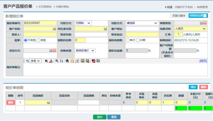![]() 补充说明(报价单可用于记录上这款产品的价格变化,所以不允许修改,只通过新增覆盖方法来实现报价变化) 点晴模切ERP更多信息:http://moqie.clicksun.cn,联系电话:4001861886 该文章在 2023/7/15 15:18:09 编辑过 |