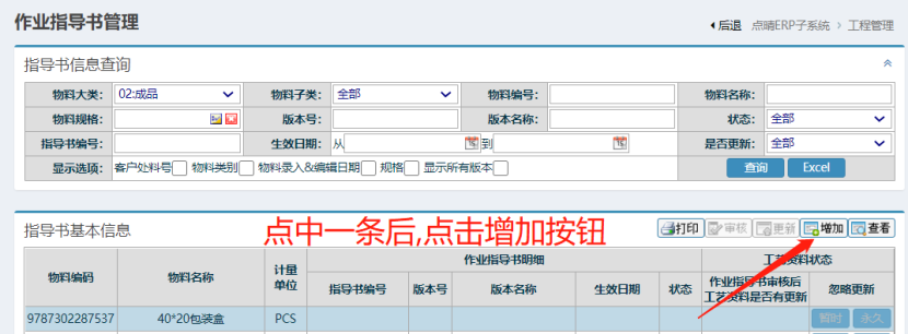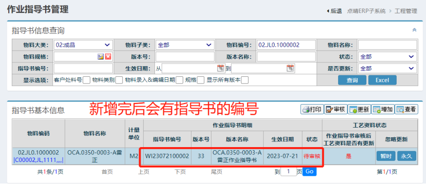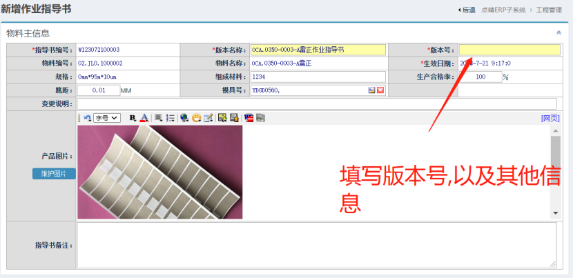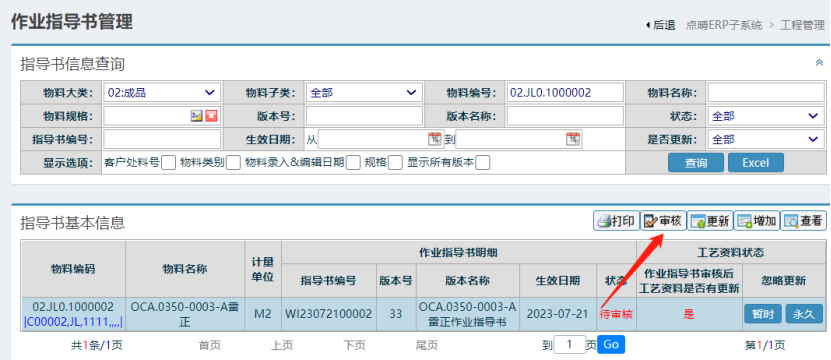 ![]() ![]() 1. 点击进入 如下图: ![]() 2. 操作如下图 ![]() 3. 填写相关信息后,填上版本号 如下图: ![]() 4. 填完后,点击提交。 如下图: ![]() 5. 新增完后可在查询界面查询到指导书的编号 如下图: ![]() 6. 进行审核操作,点中后再点审核按钮 如下图: ![]() 7. 最后点击审核通过即可 如下图: ![]() 点晴模切ERP更多信息:http://moqie.clicksun.cn,联系电话:4001861886 该文章在 2023/7/21 9:25:08 编辑过 |