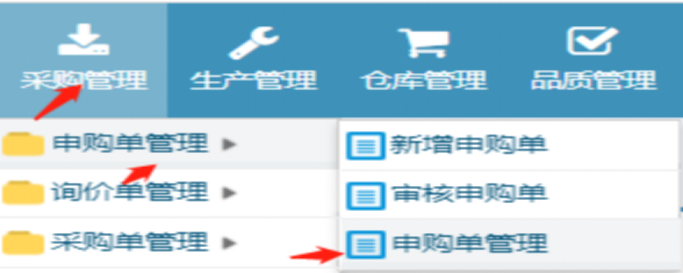2. 如果没有设定审核的话,在”采购管理-->申购单管理-->申购单管理”![]()