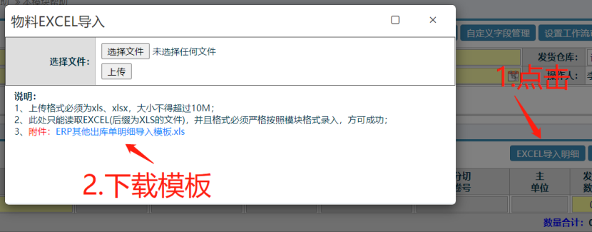 ![]() ![]() 点击进入 如下图: ![]() 下载模板 操作如下图: ![]() 按照模板初始填写的内容,参考填写即可。 若弹出提示:请先选择按先进先出出货,才能进行excel导入明细! 如下图: ![]() 需要先开启先进先出原则,教程链接:http://20705.oa22.cn
