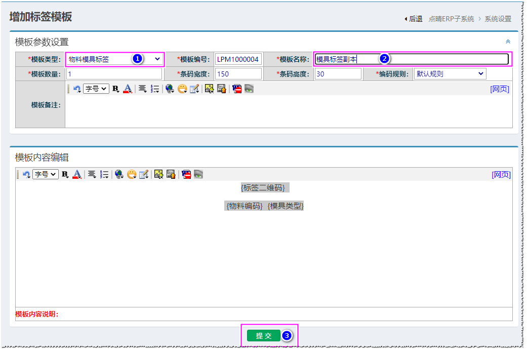 选择模板类型,录入模板名称,修改模板内容并保存新模板