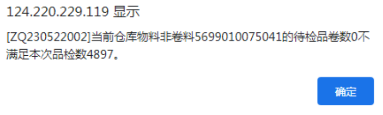 ![]() ![]() 情况描述:在采购品检入库提交时弹出提示:当前仓库物料非卷料的待检品卷数0不满足本次品检数 如下图例子: ![]() 原因1:库存对应这个批号的物料已经出掉了,找不到库存所以提示品检数不足。 原因2:该批号的库存仍然存在,但是质量状态不是待检品了,所以也会提示品检数不足。 点晴模切ERP更多信息:http://moqie.clicksun.cn,联系电话:4001861886 该文章在 2023/8/24 17:06:28 编辑过 |