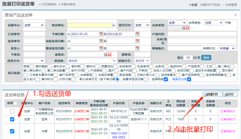 点晴模切ERP-批量打印送货单