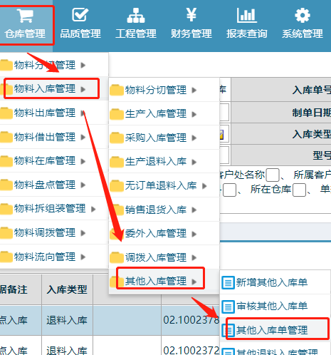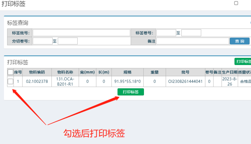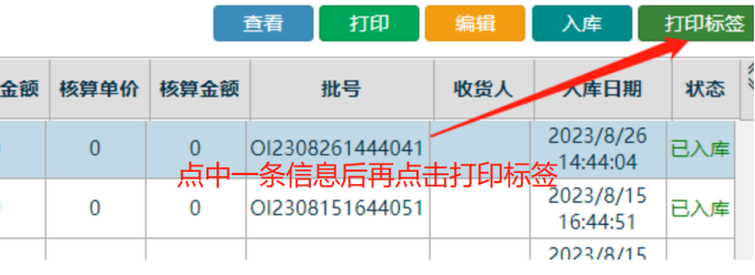 10. 立即入库后,到其他入库管理下查看记录。 ![]() 11.找到入库记录,把标签打出来。 ![]() 12.勾选后点击打印标签 ![]()