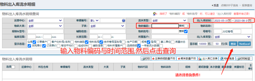 点晴模切ERP-如何查看某一个物料的期初期末库存