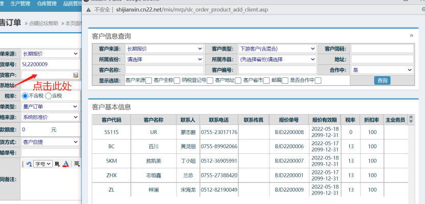 然后选择订货客户,在弹出的界面进行选择客户 如下图: