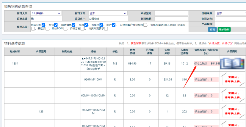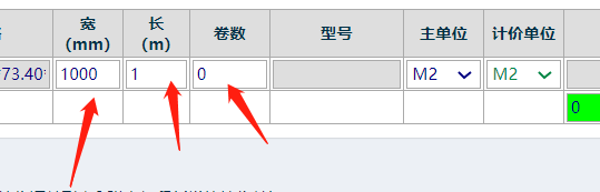 选择完货物后,填完宽,长,卷,单价等信息后,点击提交