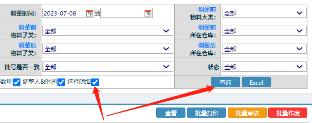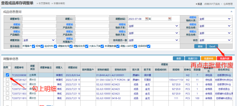 ![]() ![]() 点击进入 如下图: ![]() 勾上需要作废的明细信息,然后再点击批量作废。 如下图: ![]() 补充说明:没有明细勾选框的话勾上选择明细再点击查询。 如下图: ![]()