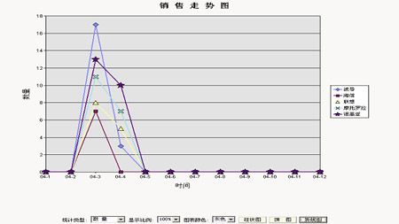 用于查询相应时间段内的商品销售数据、销售金额、成本,并以柱状图、饼图、折线图进行直观的显示。
