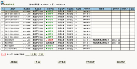 针对电脑、通讯行业版系统提供商品序列号管理功能。采用序列号严密管理模式后,系统中采用了序列号严密管理模式的商品系统要求商品数量与序列号必须一一对应,使管理更加严密。从期初商品的序列号,到开具物流单据时,序列号提供连续输入功能,以及序列号跟踪、处理以及原始单据查询。同时,本系统增加了借欠商品的序列号跟踪功能。