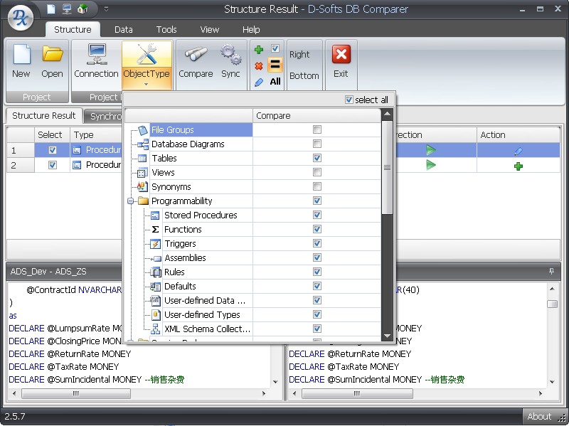 因为工作的需要笔者需要开发并维护三个子公司的管理软件,由于新程序首先部署在笔者所在的公司,所以等到分公司使用的时候不但需要更新程序,还要保证数据库结构是一致的,对于某些基础数据的表的内容也需要一致. 最开始不知道有这方面的软件,我都是自己写日志或者是写脚步让程序同步,后来发现太费神了,而且同步的时候总有些脚步没写好或者太麻烦,有时候涉及到十几个数据表和存储哦过程,真搞不好会漏掉一些. 所以我搜索了一下这方面的软件,发现真有不少. 我用过比较好用的就是这三款, sql delta, Redgate sql compare, D-Softs Database Compare. (微软自己的也用过,太麻烦) 基本上我需要的功能就是建立三个比较项目,设置好需要比较的数据对象,每次需要同步的时候点一下比较,大概浏览一下找出的不同之处然后点一下同步,就OK了,怎样很方便吧. 先来看看这三个软件的样子 Sql Delta ![]() D-Softs Database Compare ![]() RedGate SQL Compare ![]() 以上就是三款软件在建立项目(数据库链接的界面), 操作方式都差不多,需要提供Source和Target的链接信息. 值得一提的是,你可以直接输入 xxx.gicp.net,1433这样的网址,这样只要你的外地服务器安装一个花生壳再开通Sql Server的端口, 就可以直接通过互联网进行比较同步,只要网络不是很慢,比较的速度都很快. 再看看选择数据库对象和比较结果 都支持表,存储过程,触发器等等数据对象的选择,如果您确认存储过程没有进行过改动就可以不选择,这样就可以加快比较的速度. D-Softs的设定更像是sql server 2005的样子. 对于比较的结果都有语法高亮的显示. sql delta ![]() D-Softs ![]() RedGate ![]() 开始同步 大同小异, 都会计算数据库对象的依存关系,也就是说先更改依赖关系最小的,否则出现先建立用到自定义数据类型的表,后才建立自定义数据类型,那肯定是不会成功的. Sql Delta ![]() D-Softs ![]() RedGate ![]() 还有很多功能,像数据的比较和同步,以及更详细的设定就不一一介绍了. 最后说一下,以上的软件都不是免费的,它们的价格是 RedGate $395 Sql Delta $330 D-Softs $199 都是价格不菲,但是考虑到是面向企业的应用再加上国外软件环境,有一套这样的软件对于工作应该是值得的 附上演示地址 http://www.d-softs.com/demo.html http://www.red-gate.com/products/sql-development/sql-compare/ 该文章在 2011/3/17 16:30:46 编辑过 |