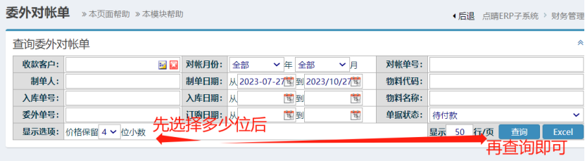 点晴模切ERP-如何设置委外对账单显示多少位小数点