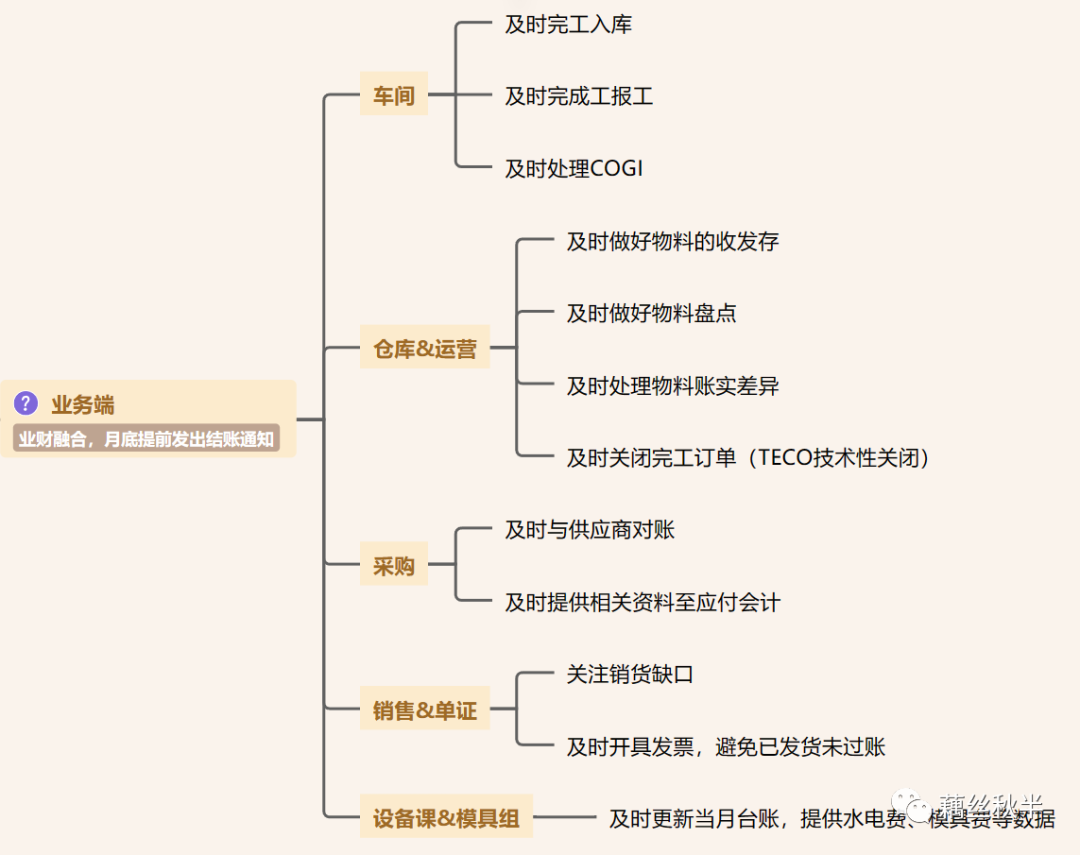 成本月结前的准备工作 一、业务端 成本月结不仅涉及财务,而且涉及业务。一般在20号左右,通知相关部门及时处理当月事项。车间及时完工入库、仓库及时做好物料收发存及盘点、采购及时与供应商对账、单证及时开具发票、人事及时提供出勤数据、设备及时提供水电数据等。 二、财务端 SAP系统的集成性很强,CO的数据很多都来自平时各个模块的自动积累。成本会计不再着重于记账核算而是更加侧重成本的分析和基础数据检查。 月底进行账务处理。 月末根据车间出勤时间,计提工资;根据当月用电量,结合当月产量,计提水电费。不同车间的因项目、淡旺季或排单方式等原因,存在人员借调,为准确统计相关成本费用,月底成本会计要对相关成本中心的人工费用进行调整。 PS:大额但不符合资本化定义的备品备件,为避免成本的大起大落,会在使用期内对其进行摊销。主要处理方法有两种,一种是将其作为资产进行管理,定义单独的资产类别,每月系统自动折旧;另一种是手工台账统计,每月手工摊销。 月结前检查基础数据。 一是成本中心费用检查。月底计提完相关费用后,我会进3611报表检查各成本中心的费用。导出明细,分部门对成本要素进行汇总,通过同比、环比,找到数据异常项,及时联系相关部门处理。需要特别注意费用的完整性,尽量不跨月;注意相关事项的科目选择是否合理,成本中心是对应。 二是外购件标准价格检查。导出物料明细,对比外购件的实际价格、标准价格、近期结算价格等,从而确定是否需要修改标准价格(如果物料的标准成本与实际成本相差较大,将会产生未分摊差异,造成成本异常) 三是检查物料基础信息。BOM是否准确,包材单位有无扩大;同类物料工时是否有较大出入、工作中心是否正确;物料组是否规范。 四是工单管理。注意查看报工数量是否准确,是否及时报工入库,投入产出是否均衡,有无超额投料或者发料不足。 点晴模切ERP更多信息:http://moqie.clicksun.cn,联系电话:4001861886 该文章在 2023/11/16 22:54:27 编辑过 |